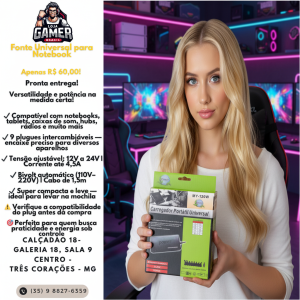 Você está visualizando: Fonte Carregador Universal Notebook Adaptador 120w Power – fonte universal para notebook R$60.00