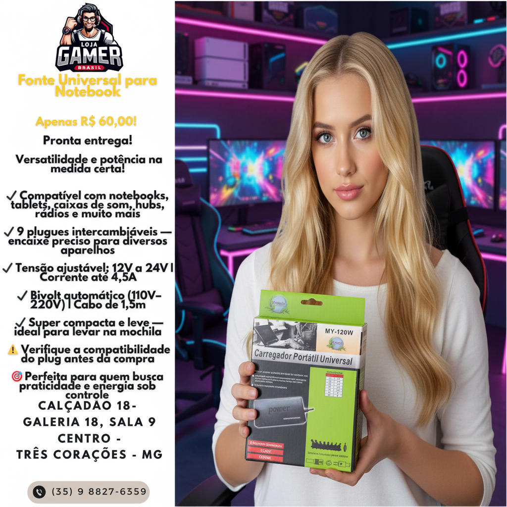 💡 Compacta, leve e poderosa — a fonte que acompanha seu ritmo!
