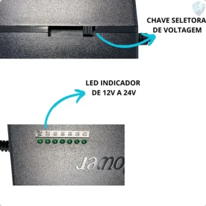✅ 1 Fonte chaveada regulável (12V a 24V | 120W | Bivolt automático)